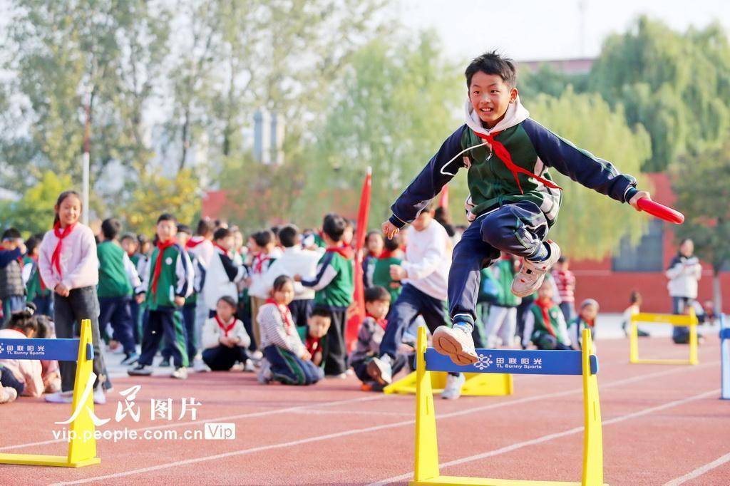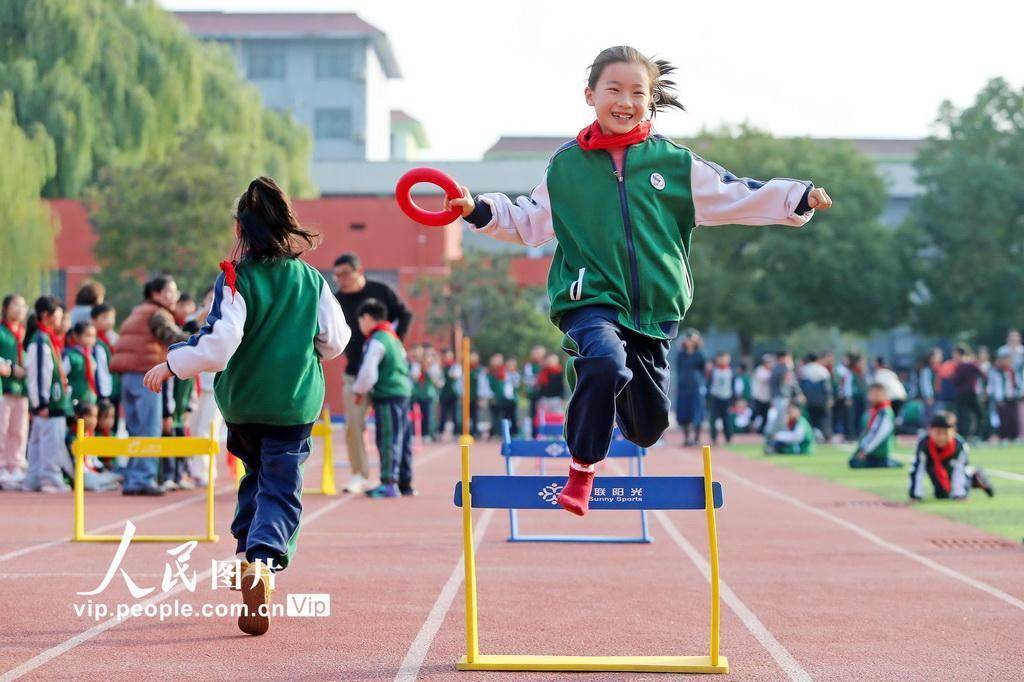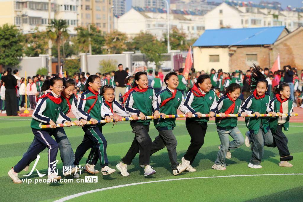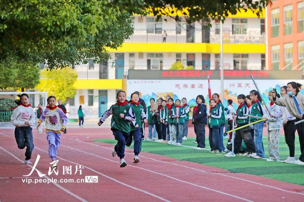 2025年10月30日,在安徽省淮北市濉溪路小学秋季畅通会上,学生在干与体育畅通比赛。