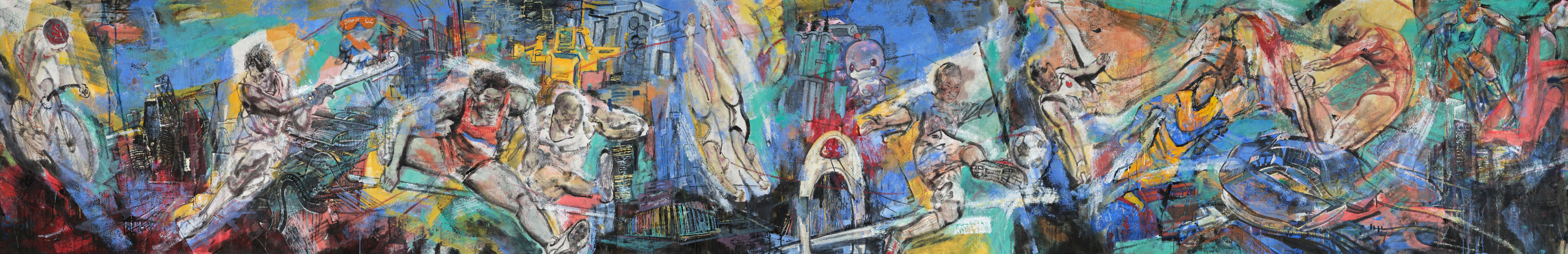 油画《菁英绘萃》(220cmX1440cm) 作家:宋陆京、张西、黄德华、李柳燕、周丽萱、廖剑华 2025年11月至12月,第十五届全运会和残特奥会将在广东、香港、澳门三地联袂举办,广州将经办开幕式及三分之一的比赛面容。这是广州继1987年、2001年、2010年收效举办第6届、第9届全运会和第16届亚运会后,再度联袂顶级体育赛事,彰显城市体育底蕴与空洞实力。 本次行径涵盖“菁英绘萃——第十五届全运会艺术展”“十五届全运会艺术名家采风行”及影像拍摄与传播、体育主题长卷集体创作、发行展览作品集等多个面容,多维度阐发体育与艺术的深度和解。 其中,展览以“体育与艺术和会”为中枢命题,特邀宇宙现代艺术名家创作体育主题作品及非遗佳作100余件(套),收集马拉松、跨栏、跳水、游水、滑雪、皮划艇等体育主题,涵盖中国画、油画、版画、雕刻、空洞材料绘图等多个艺术门类,展现厚谊澎湃、活力迸发的体育文化精神,彰显粤港澳大湾区城市品格与岭南文化底蕴,用翰墨图画勾画第十五届全运会和残特奥会的精彩图景。旨在激勉公众对体育与艺术的深爱,凝合民族自高感,指点公众宥恕参与全运会和残特奥会,为粤港澳大湾区高质地发展注入鲜美的体育文化基因。