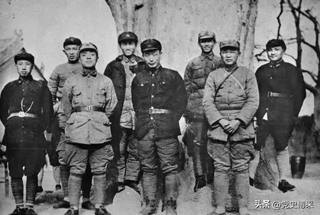◆红1军团、红15军团部分率领东说念主合影。前排右一为徐海东。